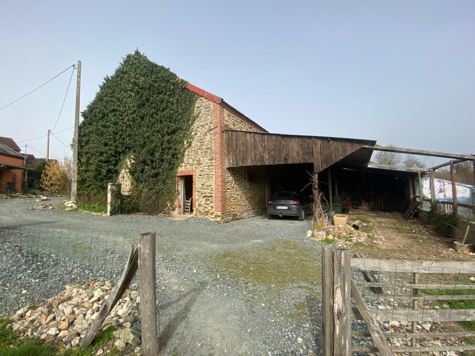 Grange sur le terrain avec atelier, une pièce de 20m² supplmentaire et à l'étage de la grange un autre volume exploitable.